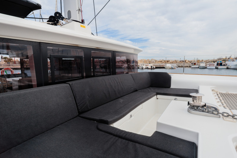La timoneria sopraelevata ha permesso al cantiere di dedicare interamente il pozzetto al relax e alle attività conviviali, con un ampio divano a C sulla sinistra, inoltre l’accessibilità del Lagoon 450 è stata ulteriormente migliorata rispetto ai modelli precedenti, grazie alle varie scalette incorporate nel pozzetto.