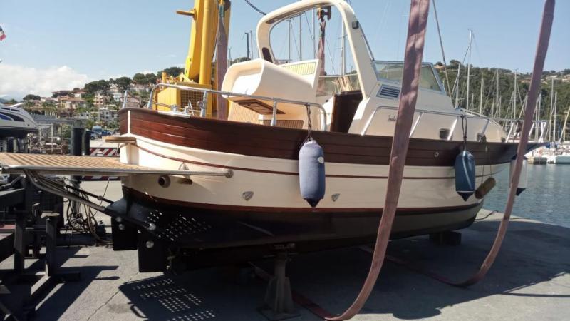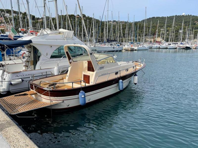 APREA 750 CABIN, 2001, COQUE BLANC, PONT EN TECK 2021, 2 x 125 HP YANMAR, 900 HEURS DU MOTEUR, DIESEL, 1 CABINE/S, 1 SALLE/S DE BAIN, COUSSINS DE DEHORS, +39 06 65 22 258/9, www.mediaship.it – CODE DE L’ANNOUNCE W138617/M