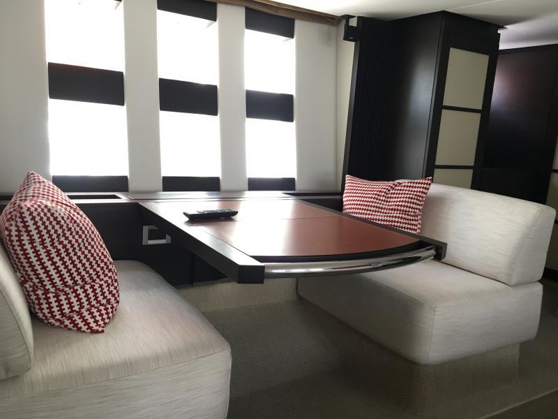 AZIMUT 62S, 2008, COQUE ROUGE, PONT EN TECK, 2 x 1015 HP CAT C18, 560 HEURS DU MOTEUR, DIESEL, PROPULSEUR D’éTRAVE, PROPULSEUR DE POUPE, ASSE, 3 CABINE/S, 3 SALLE/S DE BAIN, 3 CABINE DE DOUCHE, MACHINE à GLAçONS, LAVE-VAISSELLE, MACHINE à LAVER, TéLéVISION RéTRACTABLE DANS LA DINETTE, GéNéRATEUR, DESSALEUR, CLIMATISATION, GPS INTERFACE’ AVEC LE RADAR, RADAR, PASSERELLE HYDRAULIQUE, HARD TOP PEUT êTRE OUVERT éLECTRIQUEMENT, UNIQUE PROPRIETAIRE, +39 06 65 22 258/9, www.mediaship.it – CODE DE L’ANNOUNCE W97159/M