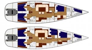 PIANO VELICO E ALBERO: laminati in autoclave dalla Marstrom, albero e boma sono in carbonio. L’antenna, sorretta da sartiame in tondino, è dotata di tre ordini di crocette acquartierate, larghe al punto di avere l’attacco delle lande in murata; il controllo della flessione del profilo è reso possibile dall’utilizzo di una centralina idraulica – utilizzata anche per vang e tesa base – che agendo sullo strallo di poppa sdoppiato per mezzo di due pistoni, ne garantisce una regolazione rapida e precisa. Il piano velico è semplice e moderno: il fiocco avvolgibile al 108% della J ha le rotaie posizionate molto internamente e si sovrappone appena alla randa full batten, la cui regolazione è resa possibile da un sistema alla tedesca. Qualora gli elementi o l’andatura lo richiedano, l’armo può passare da sloop a cutter. Alle portanti, invece, l’unità da il meglio navigando sotto gennaker, murabile sul bompresso retrattile lungo più di due metri.
