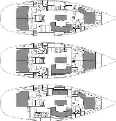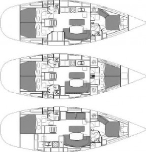 Bruce Farr has again combined forces with Beneteau to bring us this new Oceanis 461. It is Euro-styled all the way, and if you like that type of boat, this is a good one. Personally, I’m not too Euro in my yacht tastes. Still, I like to study the beautiful way the Beneteau design team sculpts and tools its decks. The brochure gives the styling credit to Armel Briand. With the weight of the Farr design office behind the shaping of the hull, we can be sure that this will be a good sailing boat. The D/L is 157. It’s a beamy boat, with plenty of beam carried to the transom. The ends are short but the counter is elevated enough to avoid dragging the transom around. I checked the sheerline with my straightedge and it’s not dead straight, but it’s very close. There might be a total of 3 inches of spring in the entire sheer. Flattish sheerlines go well with this general styling approach. Rudder and keel are stubby enough to give a 5-foot, 9-inch draft. The keel has both bulb and wings. I think there is enough plan form in this low-aspect-ratio fin to give this shoal-draft boat reasonable upwind performance. The rig is stoutly stayed with babystay forward, swept spreaders and fore and aft lower shrouds. On one of the drawings I looked at there appears to be a Doyle Stackpac shown on the foot of the main. This is a favorite of mine, having cruised with it. It amounts to a mainsail cover attached to the foot of the main and supported by the lazy jacks. The SA/D is 17.41 using 1, J, E and P. The 461 comes with three interior layout variations: two-, three- and four-cabin layouts. Obviously, the four-cabin layout is intended for charter parties. The three-cabin layout has three heads, while the four-cabin layout has two heads. I prefer the two-cabin layout with its galley tucked aft rather than stretched along the port side. All layouts are very well- designed.